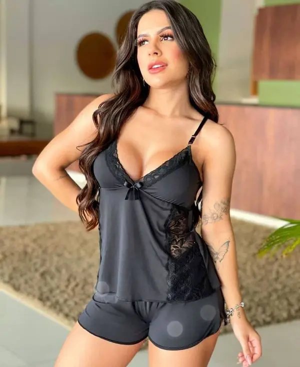- Detalhes Românticos: Possui acabamento em Renda na borda do decote e um pequeno Laço de Cetim central, adicionando um toque extra de delicadeza e charme.