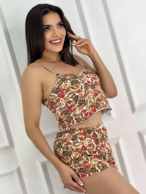 Com modelagem moderna e alcinhas finas, o top apresenta caimento leve e delicado, enquanto o short possui elástico na cintura, proporcionando ajuste perfeito ao corpo. As estampas variadas e divertidas trazem um toque de alegria e personalidade ao visual.