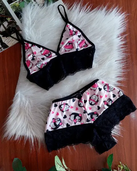 - Toque de Sensualidade: Acabamento em Renda Preta delicada no sutiã e na calcinha, adicionando charme e um toque de sofisticação à peça.