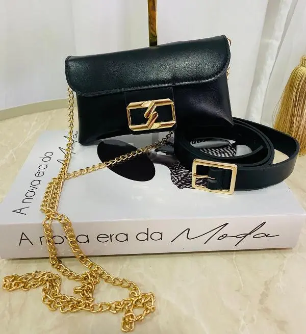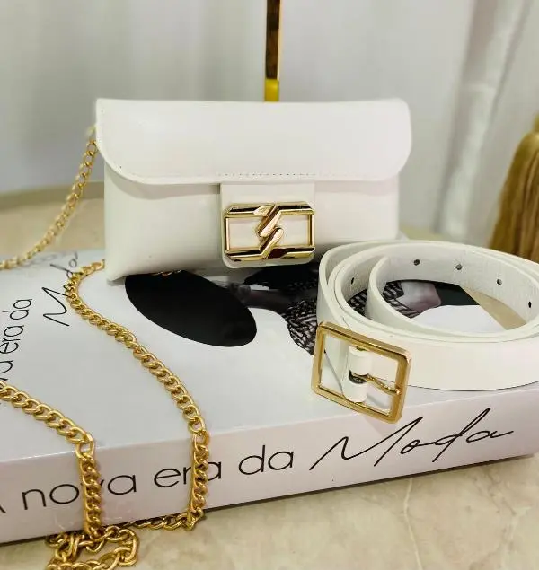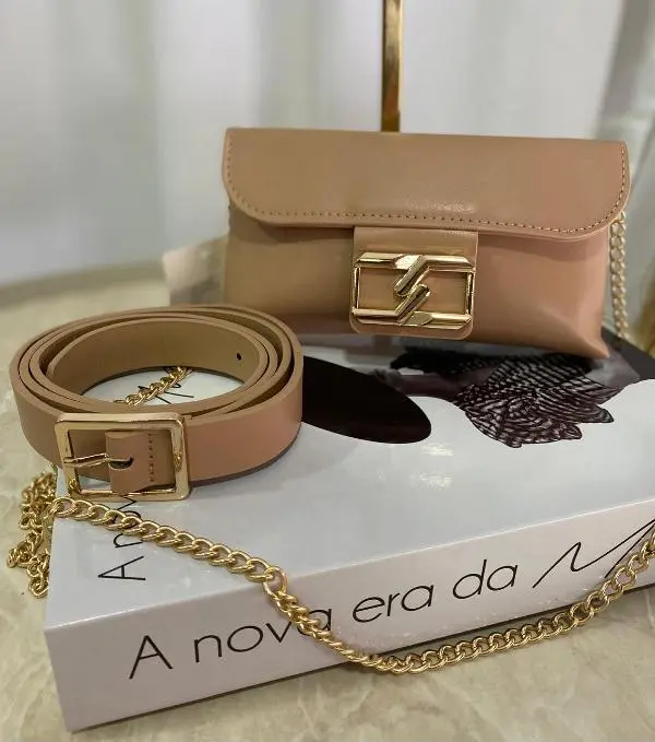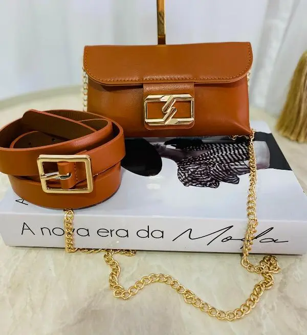 Itens inclusos: 1 Bolsa com corrente + 1 Cinto feminino.