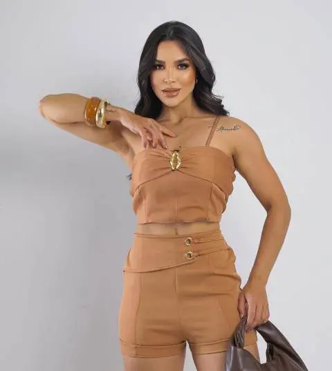 Top Cropped: Possui alças largas para melhor sustentação e fechamento frontal com botões, garantindo um visual moderno.