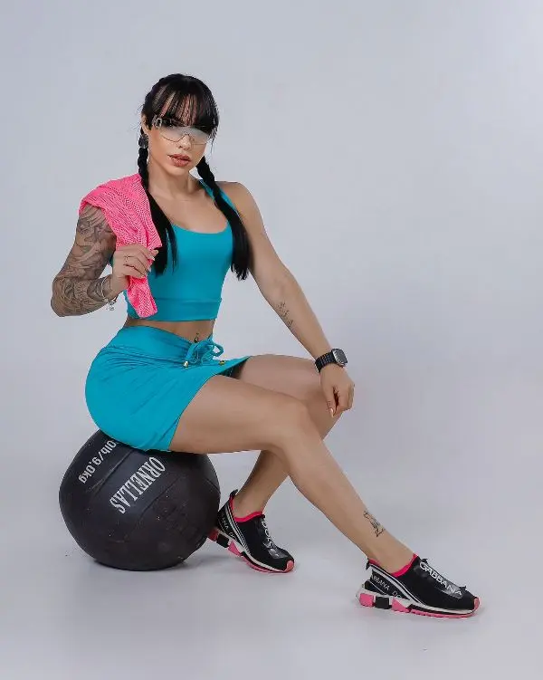 O Equilíbrio Perfeito entre Estilo e Performance Sinta-se linda e segura em seus treinos com o nosso Conjunto de Top e Saia-Short em Suplex Grosso. A saia-short é a escolha favorita de quem busca um visual feminino sem abrir mão da liberdade de movimentos, pois possui um short interno que garante total discrição em qualquer exercício.