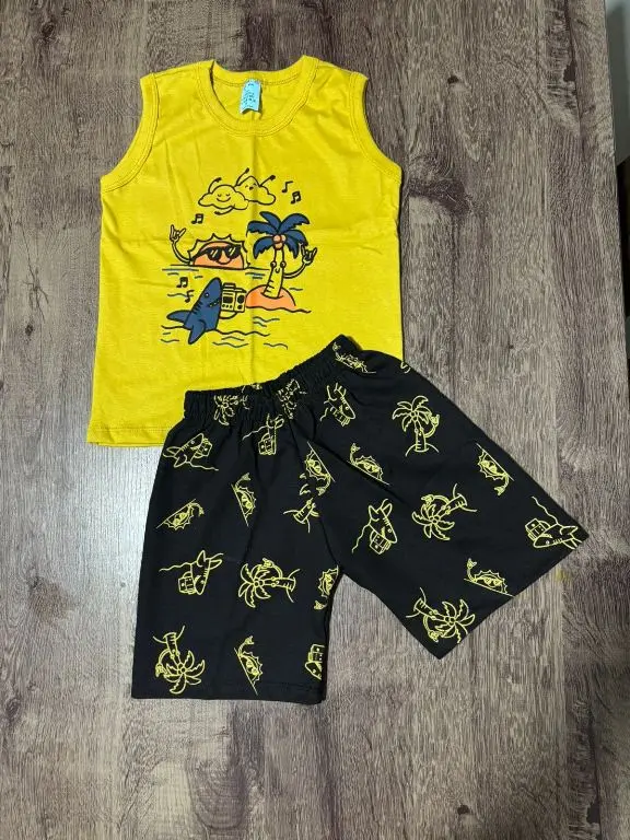 Itens Inclusos: 01 Camiseta Manga Curta e 01 Bermuda Estampada.