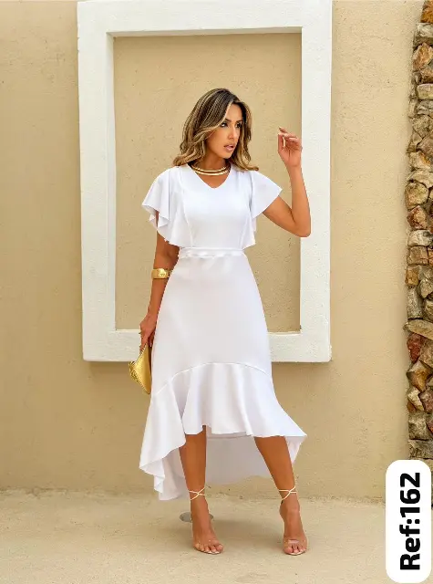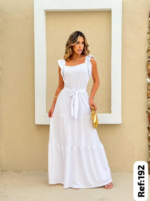 Vestido Longo branco Feminino em Crepe Estampado atacado