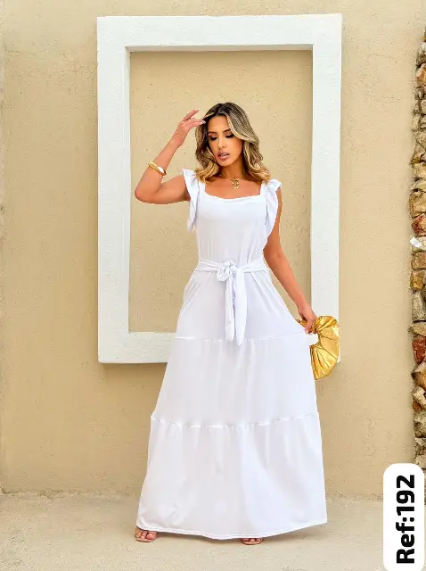 Encante-se com a leveza e o charme deste vestido longo estampado, confeccionado em tecido crepe de alta qualidade. Possui modelagem fluida que valoriza o corpo e garante conforto ao vestir. O modelo conta com mangas soltinhas, faixa para amarração na cintura, que trazem movimento e elegância ao look.