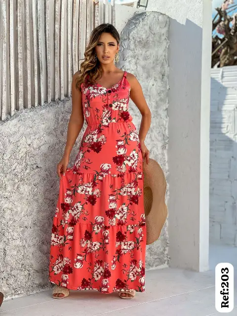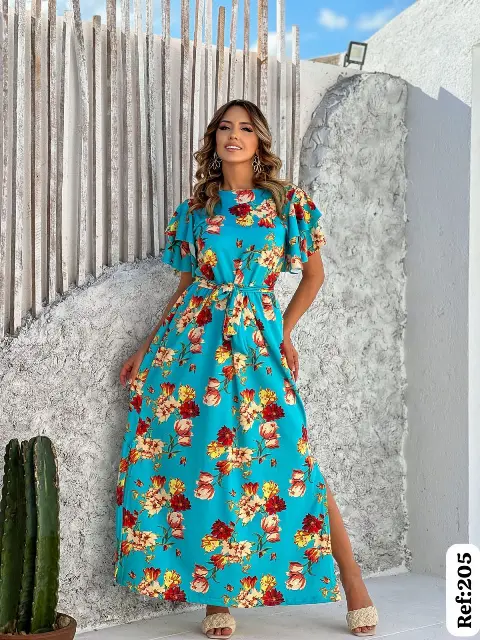 Vestido Longo Feminino em Crepe mais de 10 estampas
